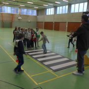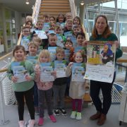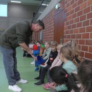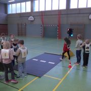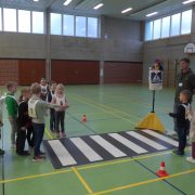 Vor allem für die ganz Kleinen ist es im Straßenverkehr sehr gefährlich. Um die Themen, die bereits zu Schulbeginn bei der Schulwegbegehung mit der Polizei besprochen und eingeübt wurden, zu vertiefen, hat die Klasse 1a am Projekt ADACUS teilgenommen. Der lustige blaue Vogel erklärte den Kindern auf anschauliche Weise das richtige Verhalten am Zebrastreifen und der Ampel. In der Turnhalle wurde dann fleißig trainiert. Alle bekamen eine Urkunde.