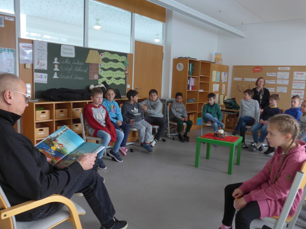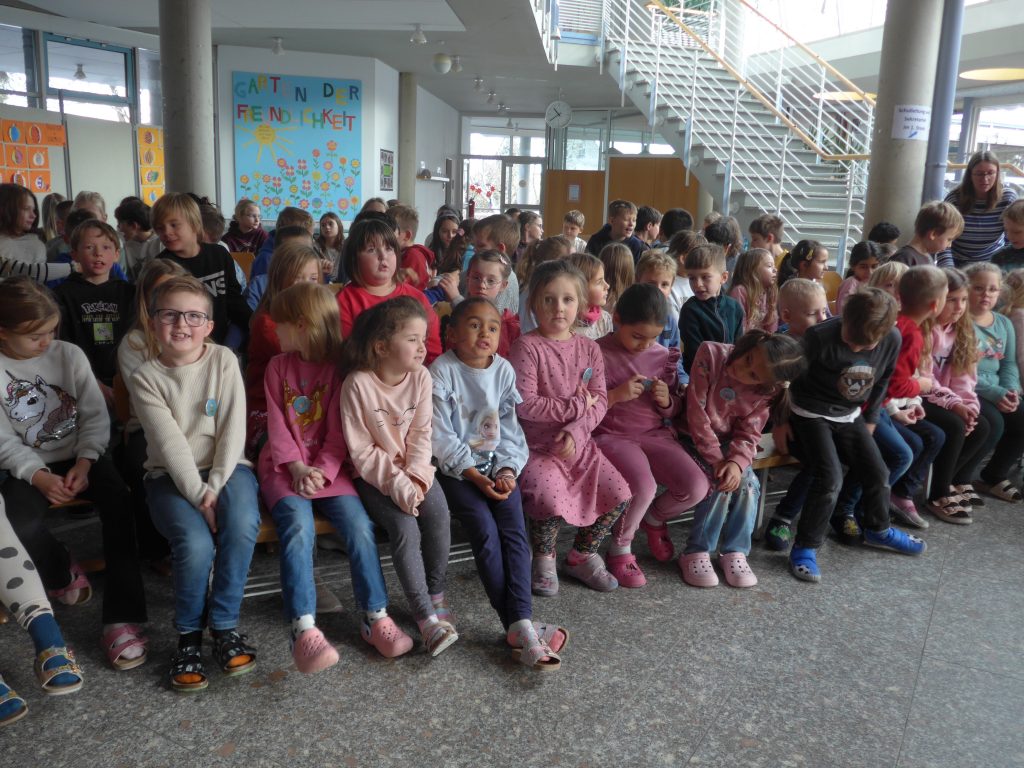 Bei einer anschließenden Schulversammlung in der Aula konnten die Kinder alle Vorleserinnen und Vorleser noch einmal sehen. Schulleiterin Simone Reitmeier bedankte sich dafür, dass sich alle trotz vieler Termine die Zeit für die Kinder genommen haben.