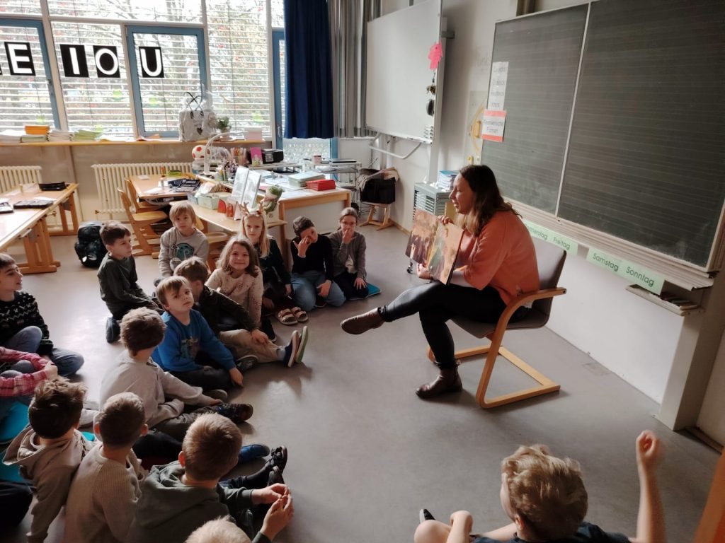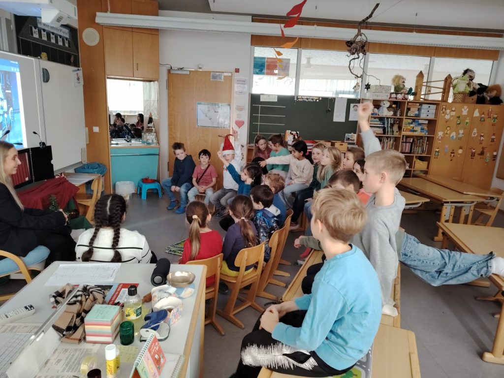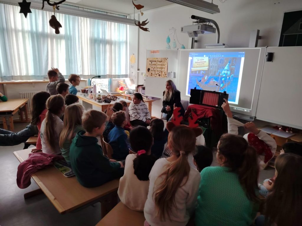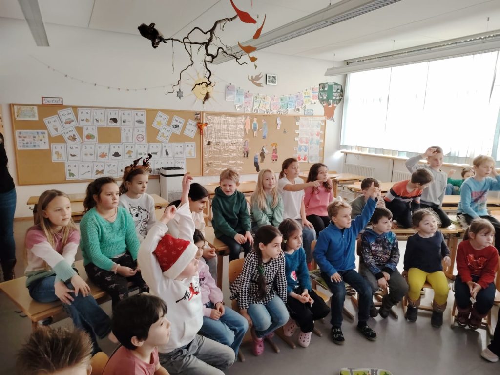 Am Mittwoch war es dann endlich soweit! Die Klassenverbände wurden aufgelöst alle wechselten die Klassenzimmer und suchten nach ihrem „Kinosaal“. Dort wurde dann von den Lehrern und unserer Lesepatin Frau Schlecht aus Büchern wie „Spekulatius, der Weihnachtsdrache“ oder „Weihnachten auf Hogwarts“ vorgelesen. Ein wichtiger Beitrag zur „Zuhörbildung“ und zur Stärkung des Zusammengehörigkeitsgefühls.