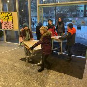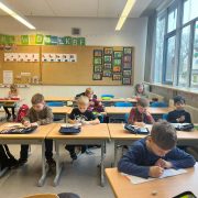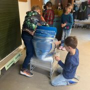 Auch beim Auspacken halfen dann die „fleißigen Bienen“ und durften die neuen Möbel gleich austesten. Die Klassen 1a und 2a finden die Tische und Stühle einfach spitze. Frau Reitmeier bedankte sich bei allen Helfern mit Naschtüten.