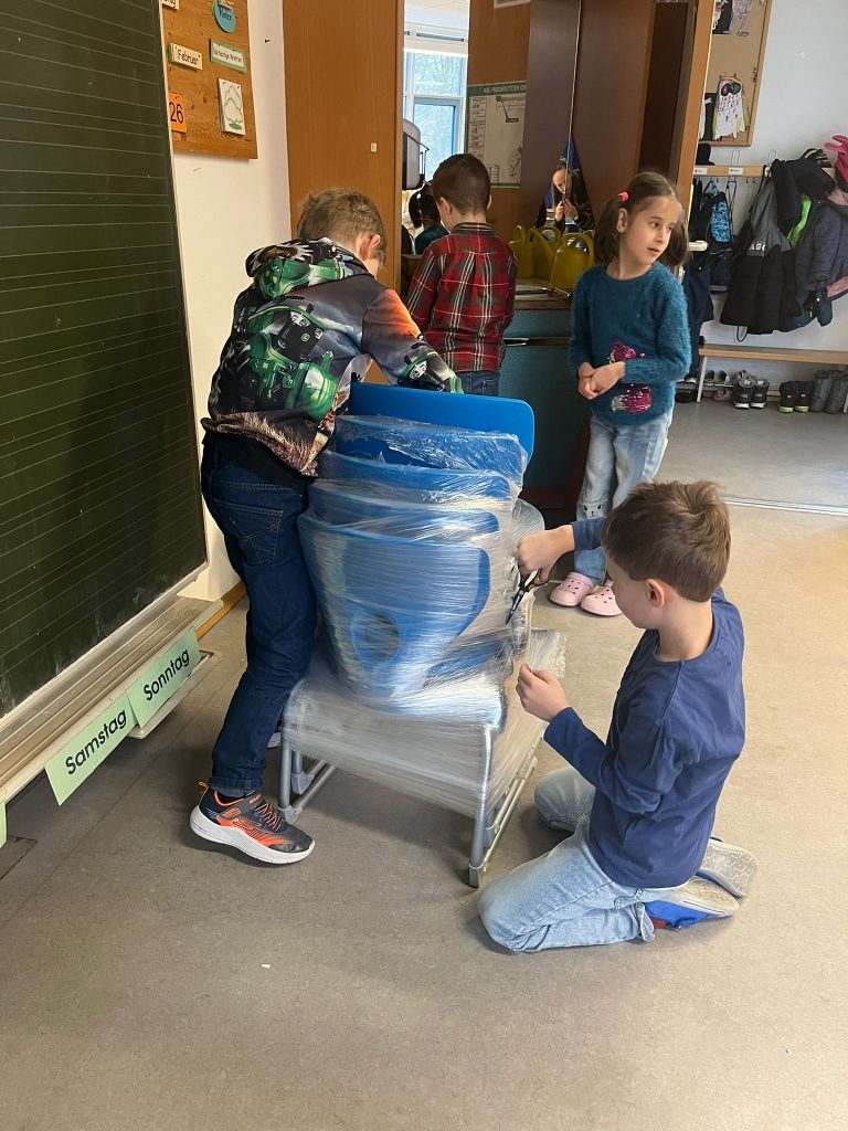 P.S.: Erster Kommentar eines Erstklässlers zu den neuen Stühlen: „Durch das Loch in der Lehne kann man sich ganz toll am Rücken kratzen!“ 😉
