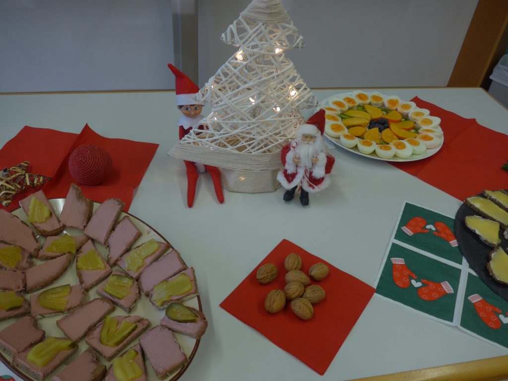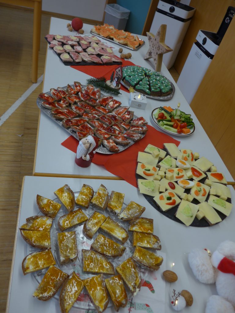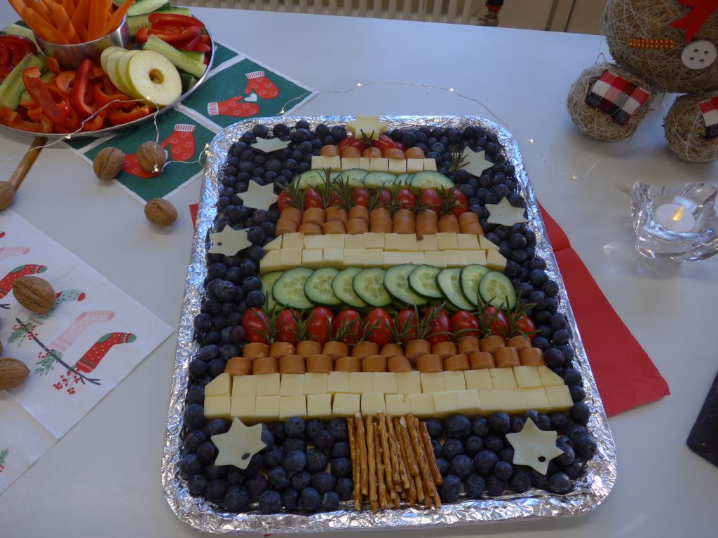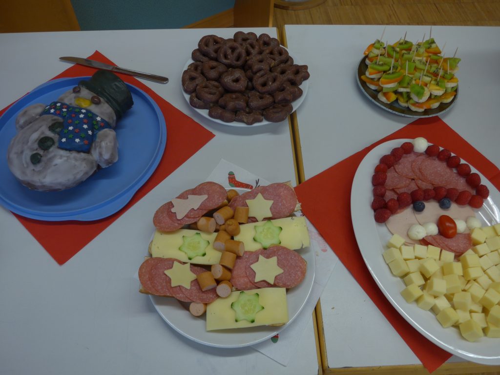 Ein weihnachtliches Pausenfrühstück für alle Klassen und eine Gruppe aus Vorschulkindern richteten Mütter und Omas der Klasse 3a her. Alles war liebevoll dekoriert. Die Leckereien waren wunderschön hergerichtet worden. Auch das Schulobst wurde dazu verwendet. Viele Eltern haben das Essen gespendet. Den Restbetrag hat wie immer der Förderverein der Schule übernommen.