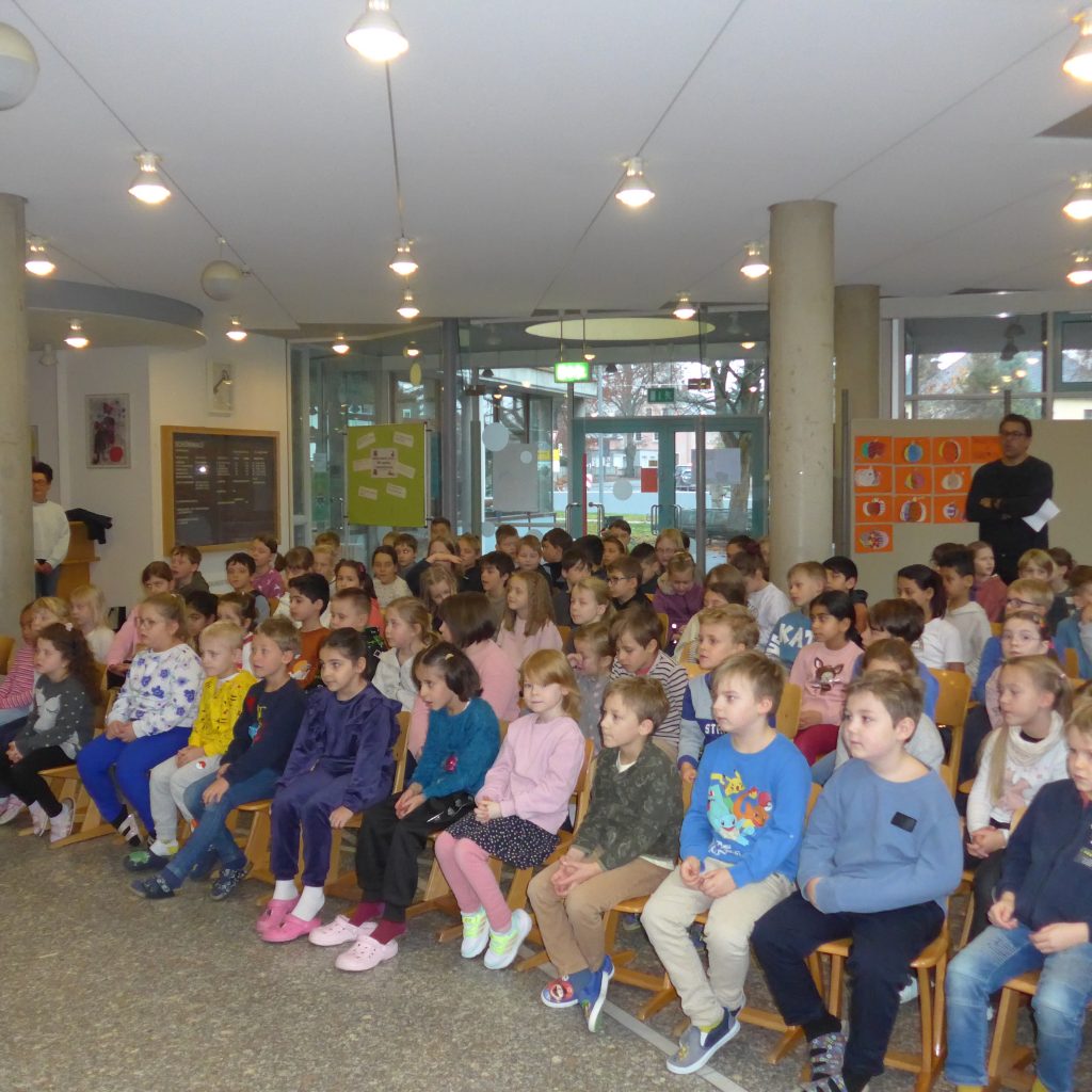 Nach einer Begrüßung durch Schulleiterin Frau Reitmeier wurde über den momentanen Stand beim Jahresmotto „Klasse Klassiker“ geredet. Aktuell wurden ca. 95 Bücher gelesen. Das Ziel der insgesamt 1000 zu lesenden Bücher in einem Schuljahr ist also noch in weiter Ferne. Die Motivation vieler Kinder ist aber da, vor allem um den Wetteinsatz der Lehrer zu bekommen. Hier winkt ein „Schlafmützentag“ am Ende des Schuljahres.