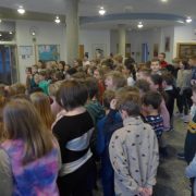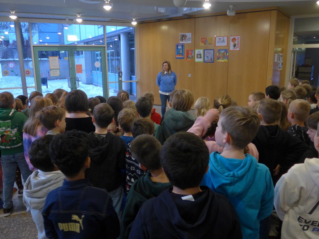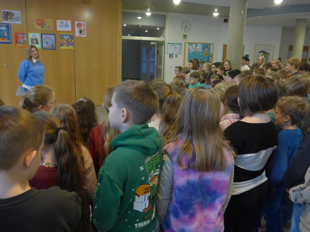 Nach den Weihnachtsferien trafen sich alle Klassen in der Aula zu einer Schulversammlung. Nach Neujahrswünschen von der Schulleiterin wurde das aktuelle Ergebnis des Jahresmottos bekanntgegeben.