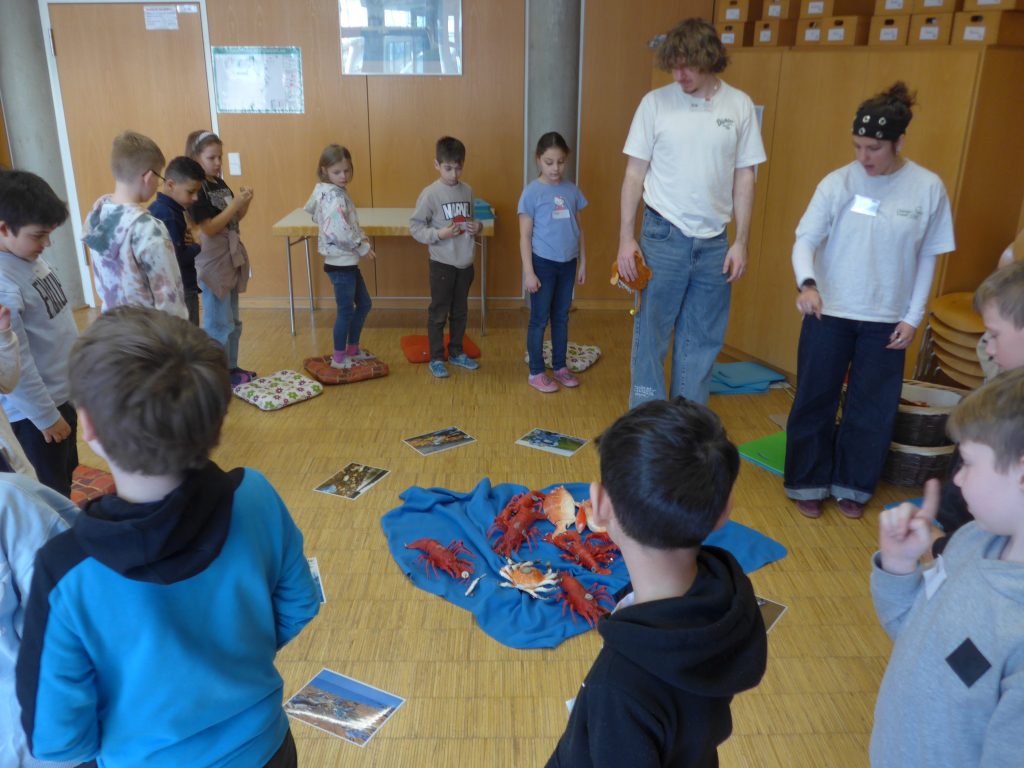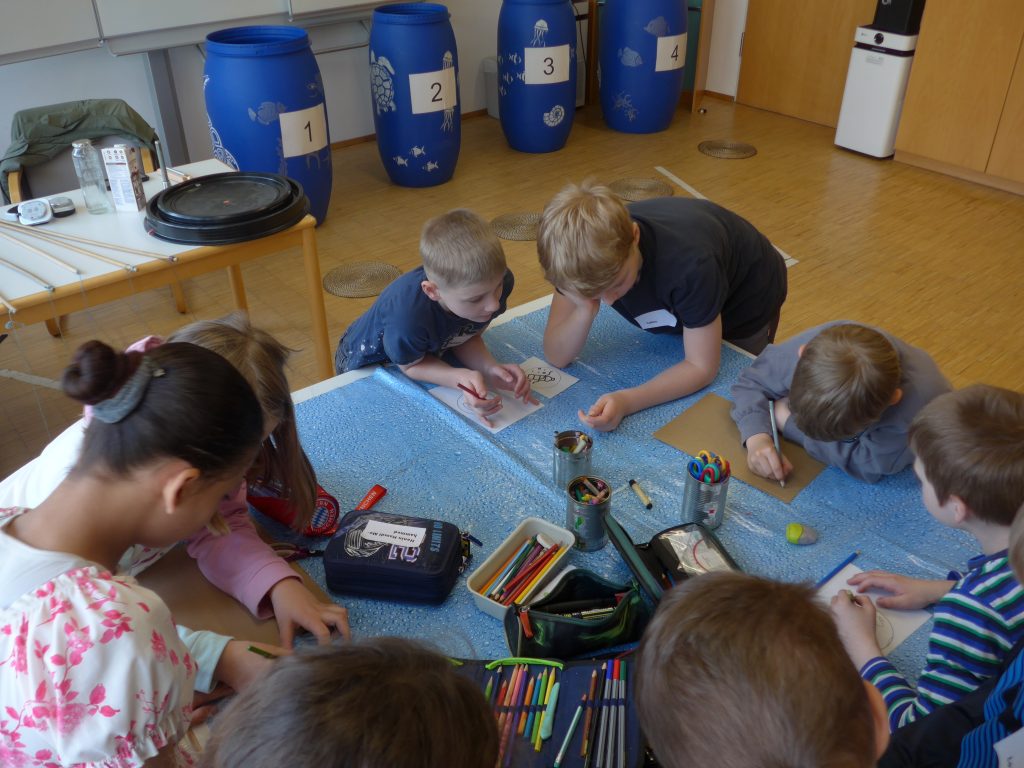 Einen tollen Workshop erlebten die Schülerinnen und Schüler der 3. Klassen. Die Schulleitung hatte sich vor zwei Jahren darum beim „Erfahrungsfeld zur Entfaltung der Sinne“ in Nürnberg beworben und nun war es endlich soweit. Das Workshop-Mobil kam auch nach Nordostoberfranken. Lena und Erik führten die Kinder eindrucksvoll in die Problematik der „Plastikflut“ ein. Spielerisch wurde verdeutlicht, wie stark die Meere belastet sind, was das mit der Tierwelt, aber auch mit uns Menschen macht. Es wurde über die Wege des Plastikmülls gesprochen, die Kinder gingen angeln und suchten als Memory sinnvolle Alternativen zu Plastikgegenständen.